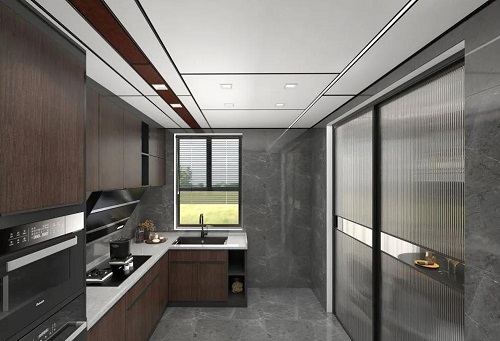 大板吊頂不僅僅是單純的將扣板的尺寸變大,還包括它的整體設(shè)計(jì)都是突破了原有小尺寸集成吊頂扣板的局限,是一種吊頂空間的全新跨越,通過(guò)與型材線梁的完美組合為消費(fèi)者帶來(lái)不一樣的視覺空間體驗(yàn)。